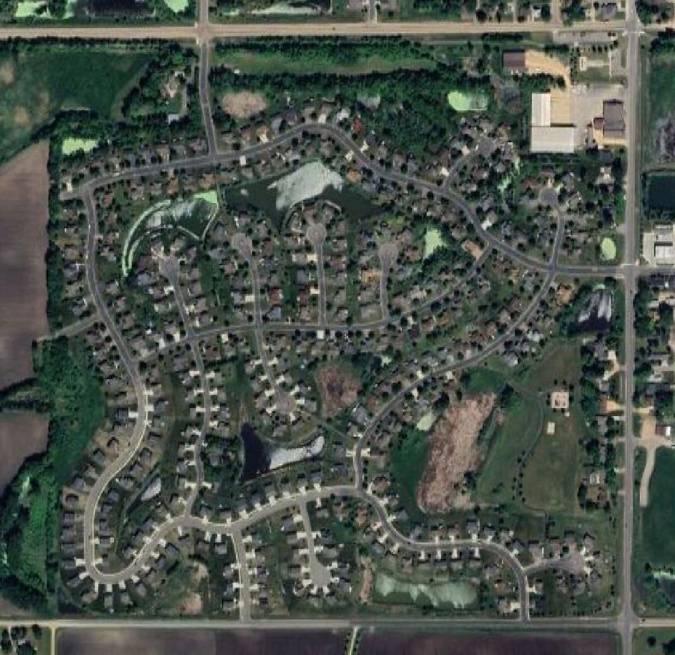 This large residential subdivision was developed on agricultural land at the edge of a growing community. The project required full civil site design, including streets, grading, drainage, and utilities, along with stormwater ponds and coordination for future development phases. The layout needed to maximize buildable lots while maintaining a walkable, neighborhood-oriented design and integrating green space.